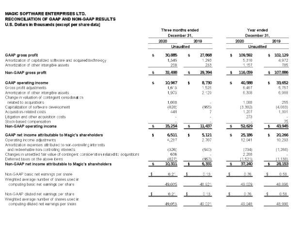 This press release contains the following non-GAAP financial measures: Non-GAAP gross profit, Non-GAAP operating income, Non-GAAP net income attributable to Magic’s shareholders and Non-GAAP basic and diluted earnings per share.