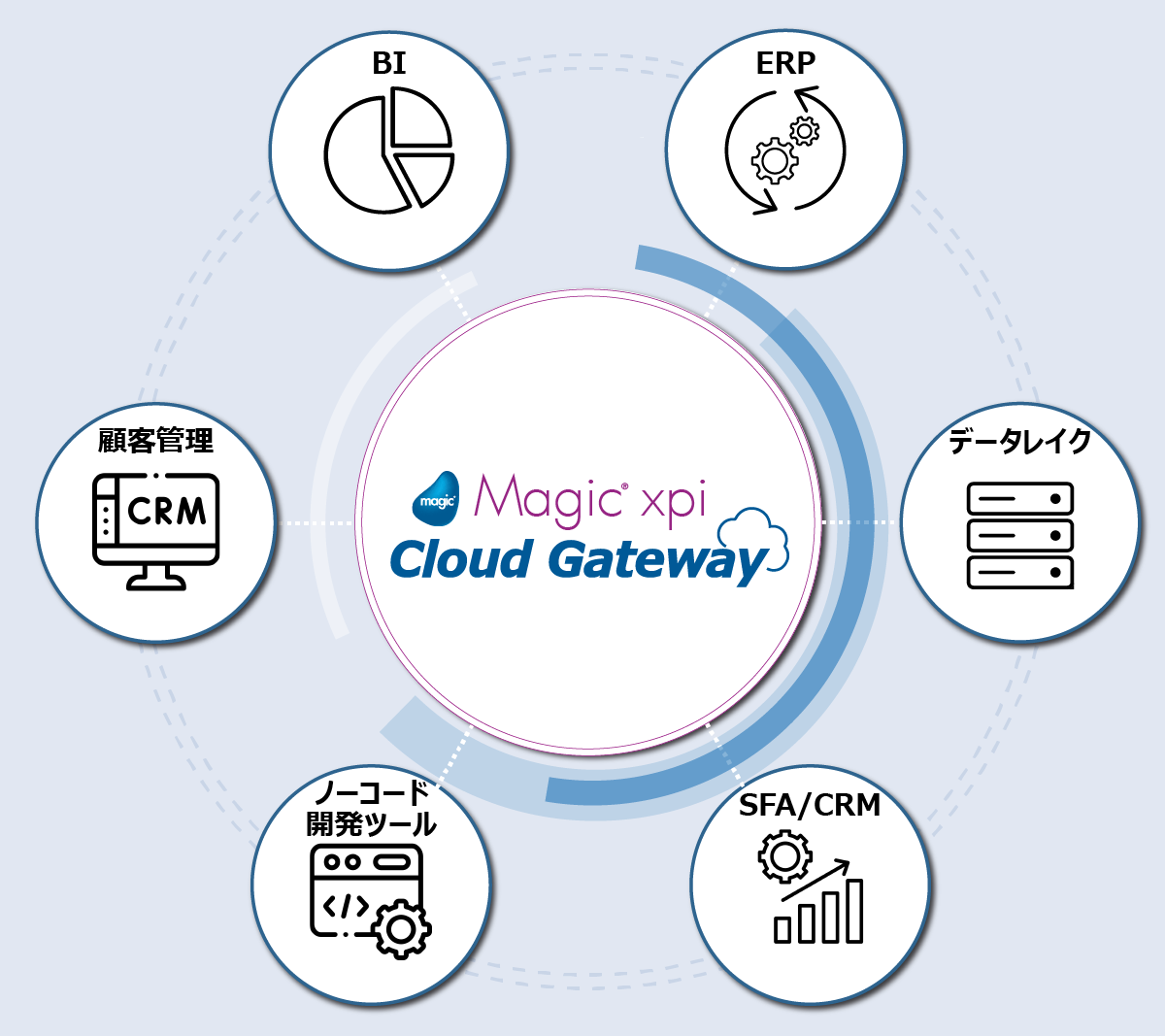 「Magic xpi Cloud Gateway」は、複数クラウド間のデータ連携を実現したいユーザー様が、クラウド上のMagic xpi月額固定料金で利用できるデータ連携クラウドサービスです。