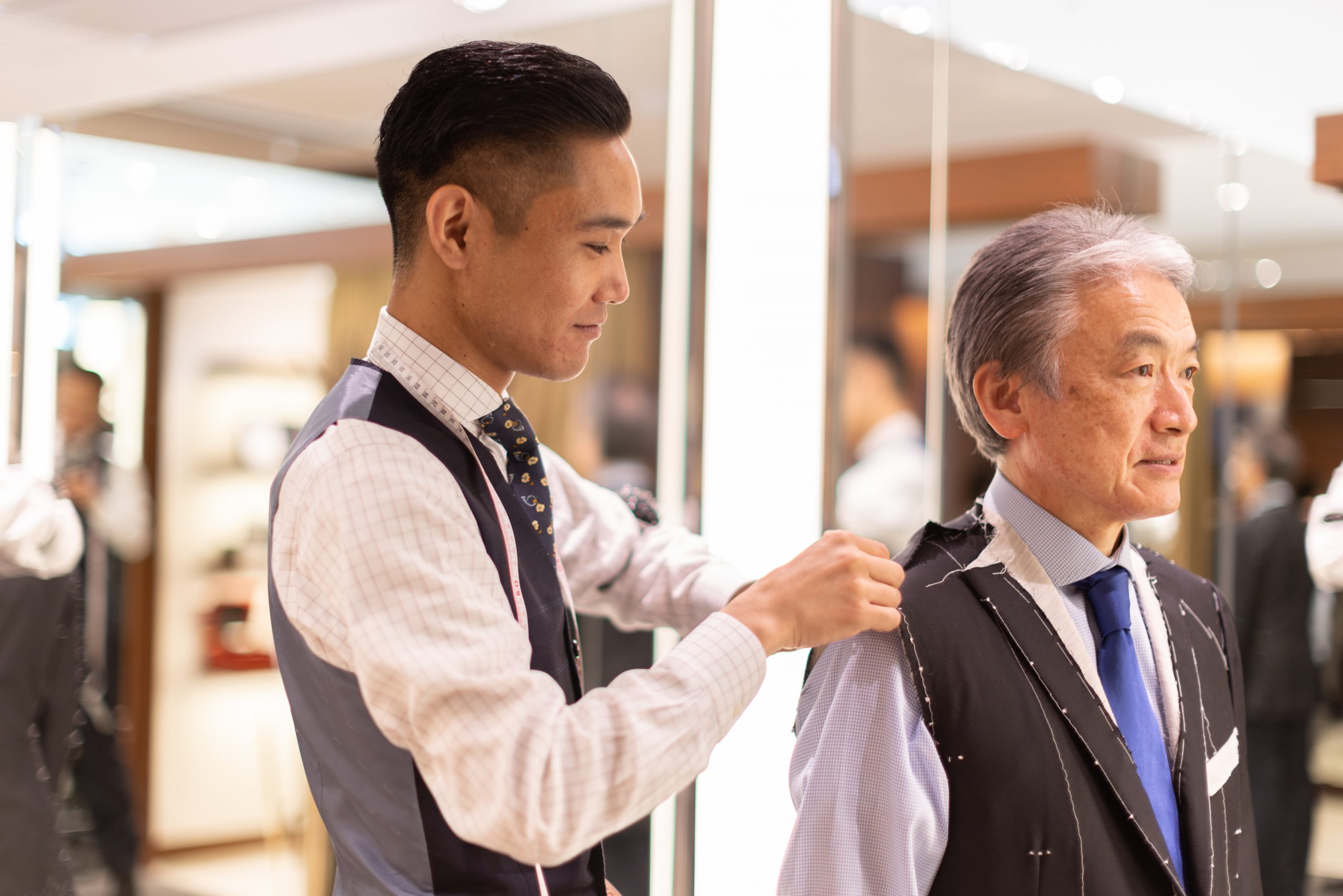 銀座英國屋様は、「信頼を得られる装い」という軸を持ち、創業から80年を超えてフルオーダースーツを提供しています。お客様が生地とデザインやオプションを選んで、その仕立て価格を確認後に注文を検討できる、「無料オーダー体験」が好評です。