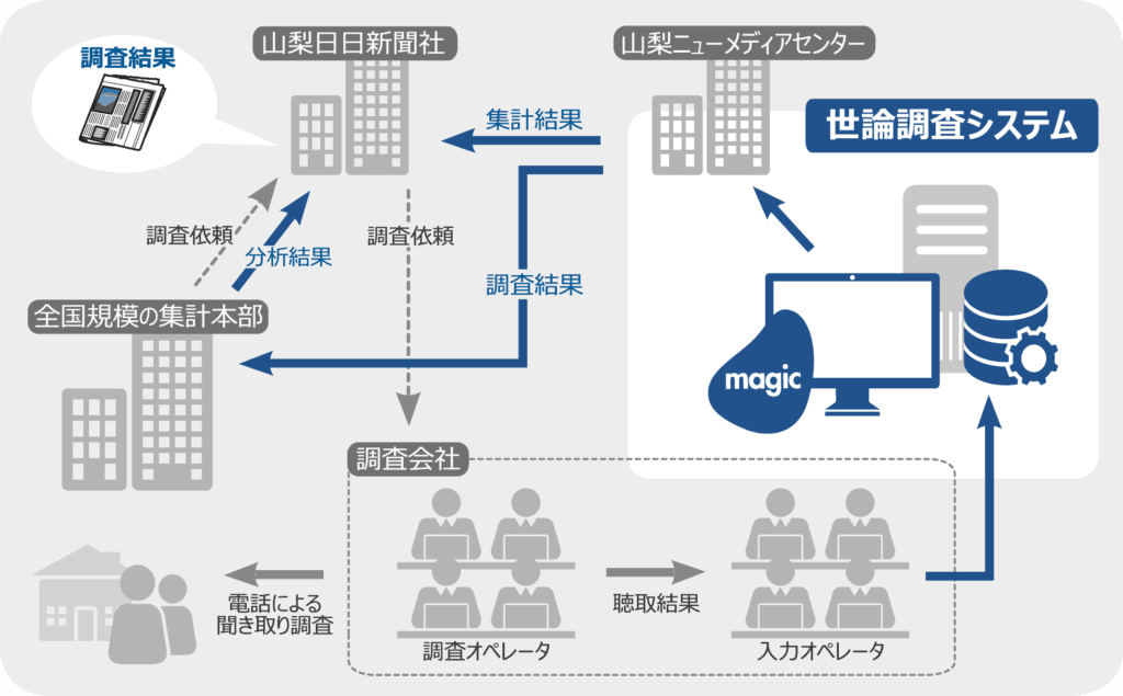 山梨ニューメディアセンター様は、20年前に山梨日日新聞社が使用する世論調査システムを構築しました。今回、Magic で再構築に至った背景を、取締役 企画開発局兼営業局長 望月 裕 様に伺いました。