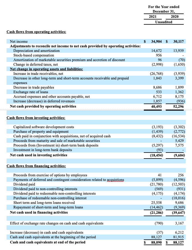 - Cash flow from operating activities for the year ended December 31, 2021 amounted to $40.5 million compared to $52.3 million in the preceding year.