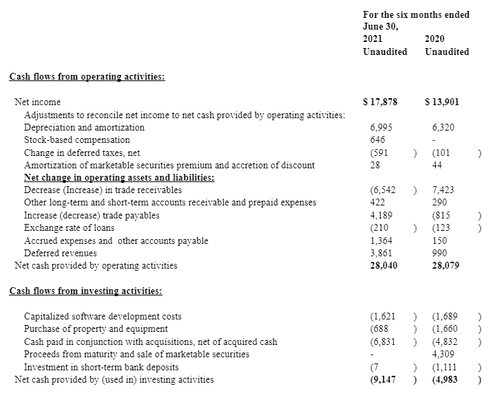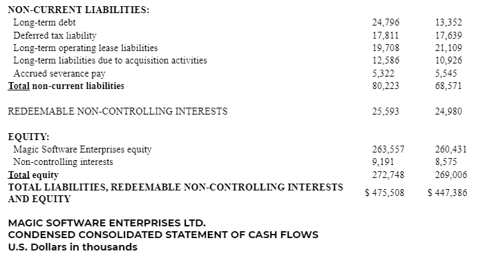 • As of June 30, 2021, Magic Software’s net cash, cash equivalents, short and long-term bank deposits and marketable securities amounted to $106.1 million.